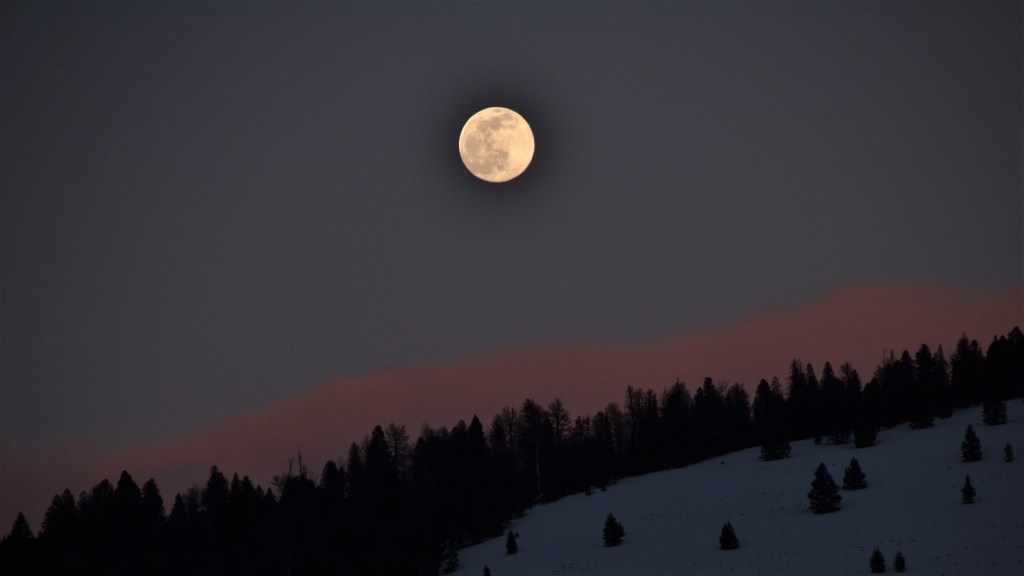 Sunset and moonrise over the Sawtooth Range, Idaho