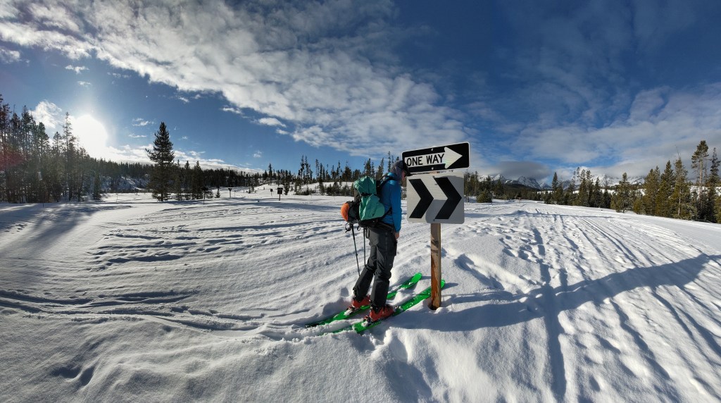 As magnificent as this secluded part of the United States was, we had to concede that the park ranger was right: skiing here was for those who came with a snowmobile. Also, we’d have to wait for days or weeks to see more snow. We thus left Stanley after two nights heading further north.