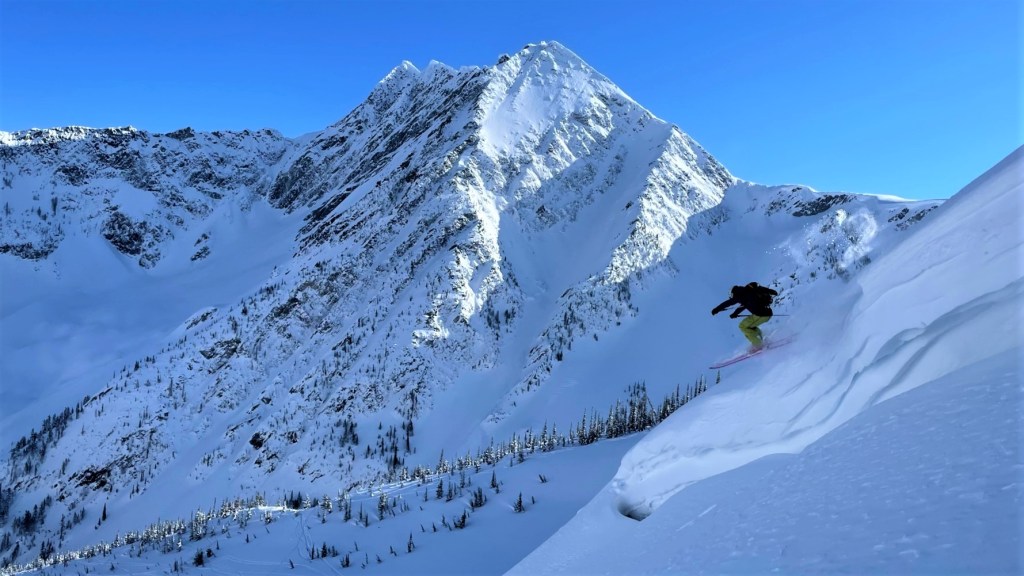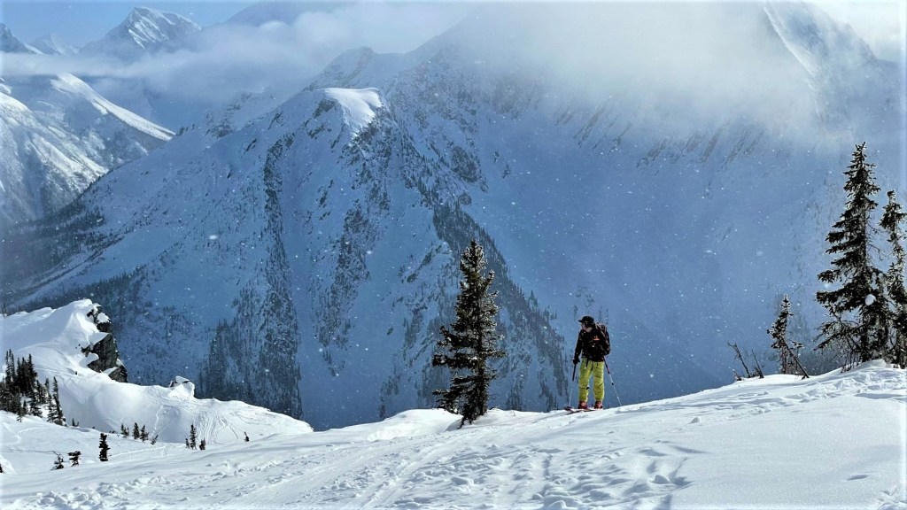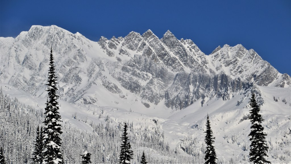 The skiing was heavenly and no words would do justice to how we felt. We climbed Ursus Minor but turned back below the summit as it got windy and descended in snow that was lighter than anything we had ever encountered. The scenery was breathtaking. Back at the parking lot, we warmed up again in the restrooms and got ready for the most difficult part of the day – the drive back. We returned to Rogers Pass for later in the week to climb the ridge of Little Sifton, ski and unnamed, steep and deep tree run, and to ski Puff Daddy, a classic descent visible from the road.