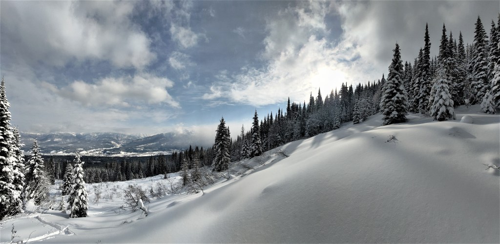 Some, we’re not exactly sure who, claim that there is only a marginal difference between the US and Canada. Whether that’s true or not, we found a number of things more difficult here. For instance: There were certainly more skiers and it proved very difficult to find lodging. “Sorry, we are fully booked”, became the phrase we would hear most frequently, usually followed by a references to an obscure waitlist, availability around April 2024, or a call back we would never receive. The breathtakingly beautiful mountains, on the other hand, seemed separated from us by even longer stretches of thick forest. Maps or backcountry skiing literature seemed non-existent. The “fully booked” phrase was also what we heard from the countless guiding, helicopter and ski cat operators we called. Finally, the inconvenient truth about our Californian tires could no longer be denied, as we struggled even to make it up driveways that had more than a 2° gradient.