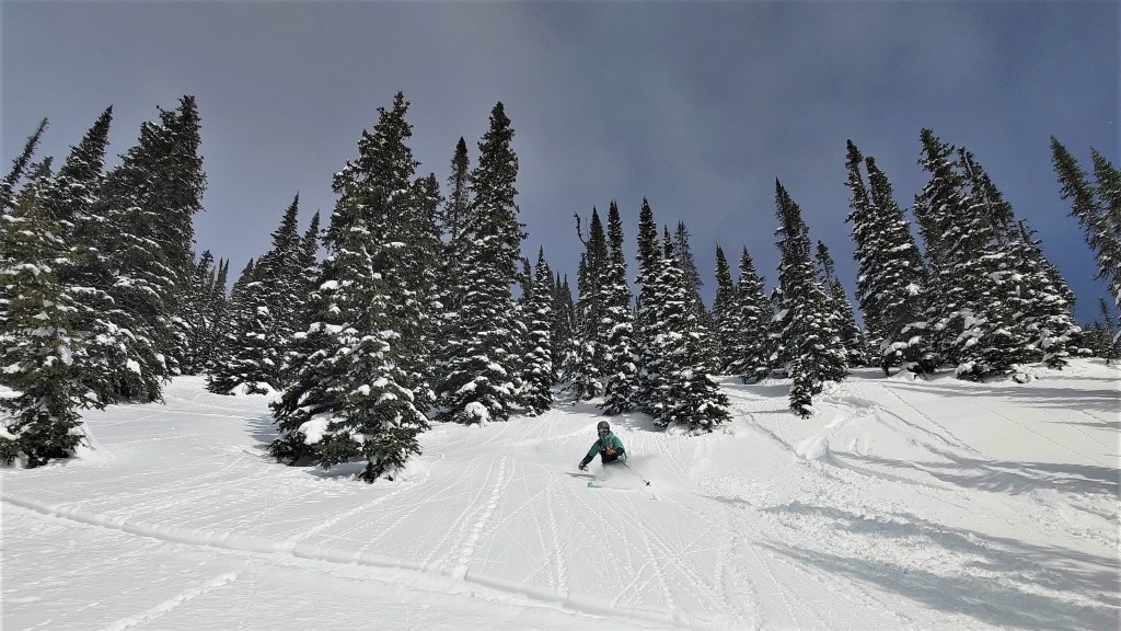 This part of Route 93 and other stretches of road in the area are not only infamous for life threatening truck traffic but are also known as the Powder Highway. It seemed like a misnomer – as in other parts of the American northwest, it hadn’t snowed for weeks and the latest low pressure brought warm temperatures and rain. But the forecast appeared promising and we decided to make Golden our first stop.