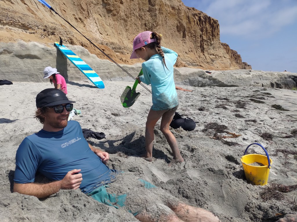 Summer conditions generally produced small and inconsistent surf, most suitable for longboards. I borrowed and rented boards of varying sizes and explored several of the beaches between Del Mar and Carlsbad, including Suckouts and Tabletops near Cardiff by the Sea, home to 1990s surf superstar Rob Machado. Peter and I drove straight down to Moonlight Beach one morning, where waves somehow looked just a bit better at the end of D Street than anywhere else. I did wonder, while paddling out, why all of the few surfers around me seemed to be less than half my age, were wearing jerseys and surfed circles around me. Only when one of them asked politely whether I was in the heat did I take note of the flags planted on the beach and the judging tower. I tried to leave the contest area quickly and without showing much embarrassment. Meanwhile, Peter was removed from the scene by onlookers who pointed out that his blue rash guard would be easily confused with a contest jersey.