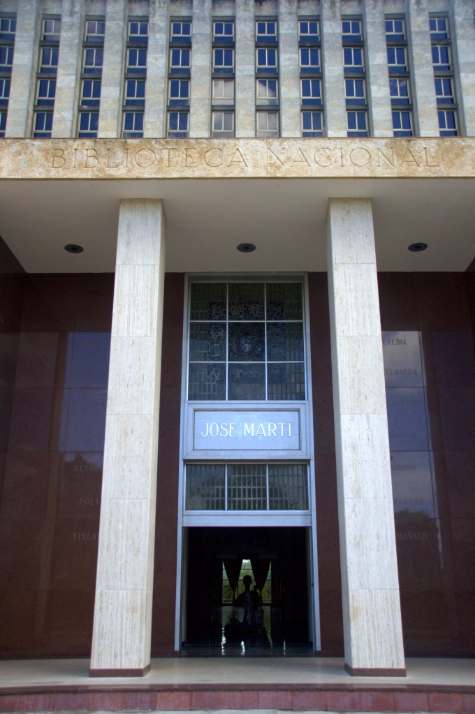 To make matters worse, closing time always seems to approach much faster than opening time. After having spent a morning waiting at the Havana central bus terminal for a clerk to appear at the ticket sales office and then waiting for my turn to ask whether tickets are available, a look at the clock – it is 1pm – seems to suggest that the afternoon could be spent with a visit to the adjacent national library. The entrance is open, five staff are present in the lobby and busy staring at walls, one of whom kindly offers information. There are three ways to enter the library: 1. by being Cuban; 2. as part of a guided tour for non-Cuban visitors, for which booking an appointment upfront by phone is imperative and cannot be arranged on site; and, 3. As a lonesome visitor for consulting literature, which requires an advance appointment, one’s passport, and requesting a special permit, none of which can be arranged just before, that is 4 hours, before closing time. I admire the national library from the outside.