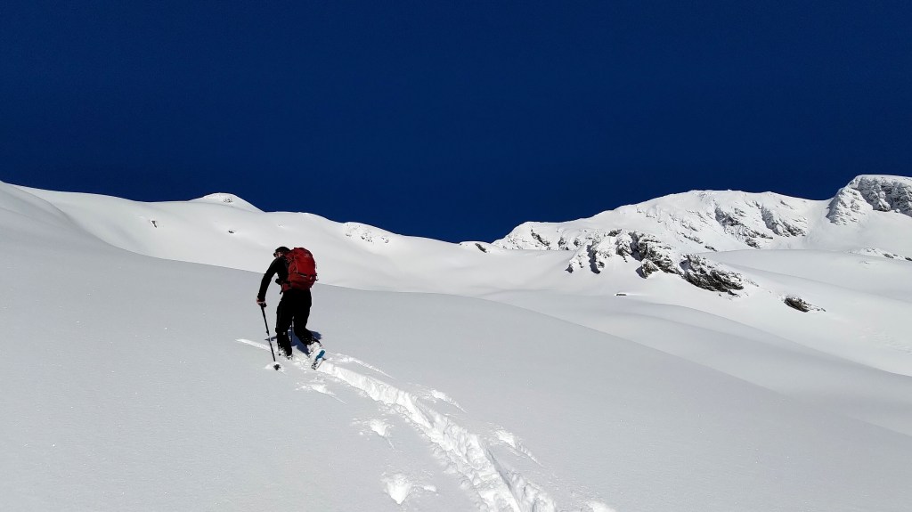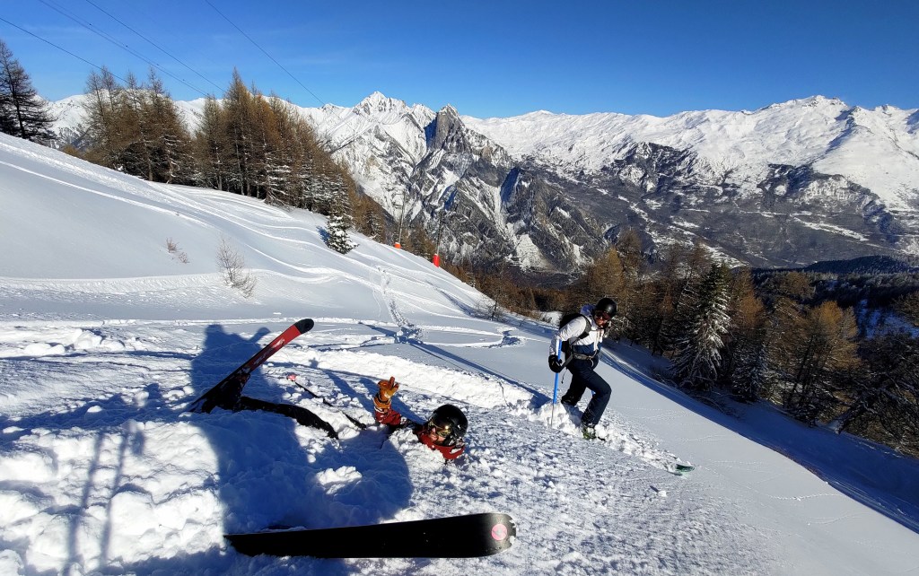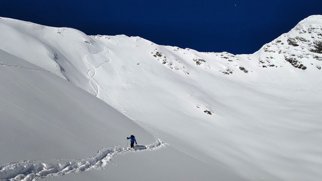 Jour de repos vite oublié, jeudi 12 nous amène en Lauzière avec Raph, qui n’a toujours pas envie d’aller travailler. On trouve une nouvelle petite couche sous le télésiège de la Lauzière de St François, qui reste fermé pour la journée, et dans la combe sous du Col de la Flachère. Malgré les autres randonneurs dans le secteur, on se sent seul au monde et on ne croise aucune trace de descente. Le ski est toujours aussi bon.