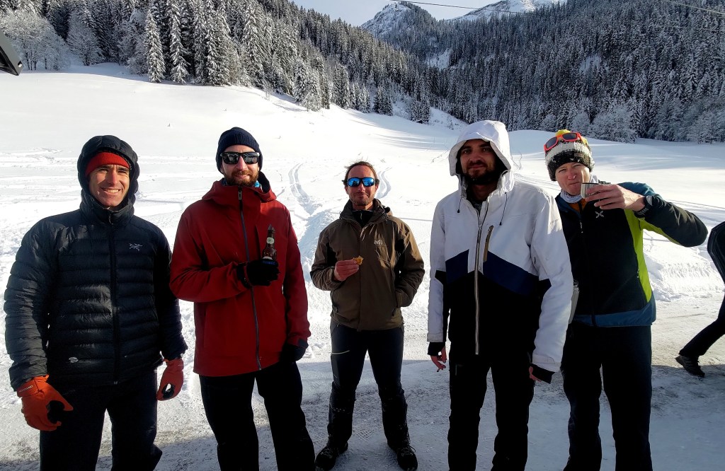 Il reneige de manière généreuse pour un 21e siècle la semaine d’après. La météo n’a pas échappé aux deux Alex, dont l’un monte des Hautes Alpes tandis que l’autre descend d’Annecy. Jeudi 19 on se retrouve tôt a l’aire de covoiturage, Matéo nous rejoint en route pour Chamonix, et, bières fraiches dans le coffre, on part de Lieulever vers le Grand Arc. La nouvelle couche est également d’une bonne 50aine de centimètres en épaisseur, la trace fait mal dans les cuisses et on s’arrête au Petit Arc par prudence. La descente est excellente même s’il commence à manquer de pente pour les quantités de neige. Mais non, on ne va surtout pas se plaindre, sauf Matéo qui laisse un gros morceau de carre de ses Dynastar sur un caillou au premier virage. La bière au parking donne un peu de confort dans la douleur de la perte. La semaine se termine avec une bonne dose de fondue à la maison et une journée en station à Méribel grâce à l’accueil de Fred à l’appartement de sa famille.