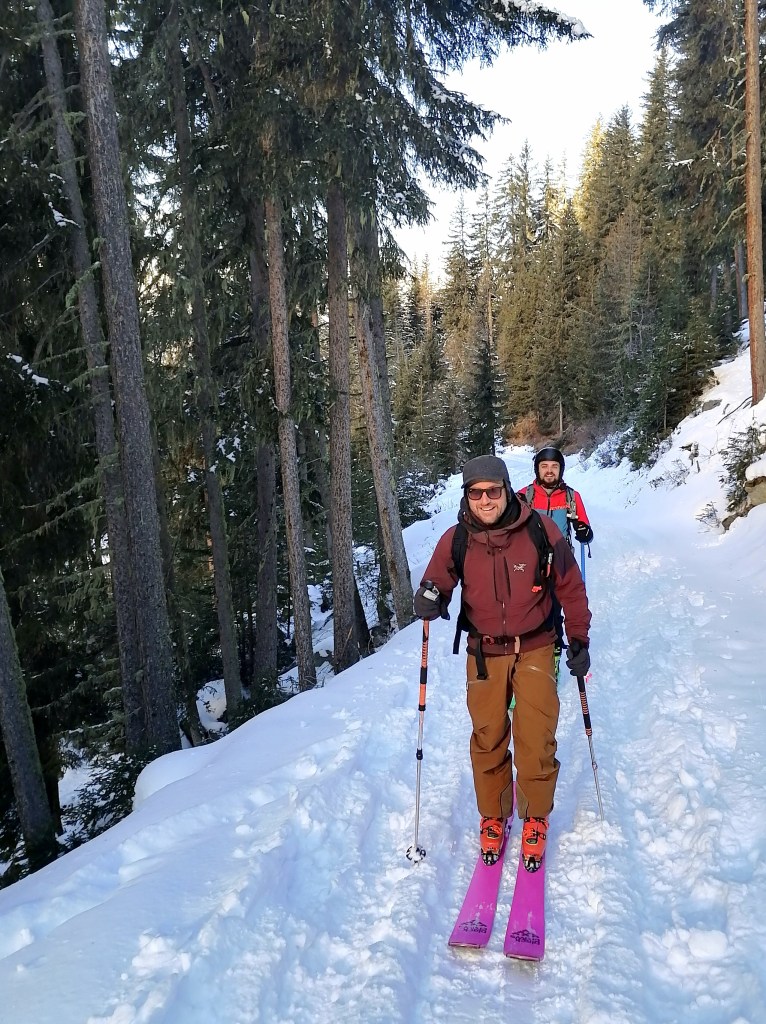 Warm temperatures and poor visibility moved in on Saturday, precipitating a return to France and eastern Austria for the remaining members of the team. That did not prevent another easy win on the way back from Lizumer Hütte, by hitting a north-west aspect of Mölser Berg followed by a quick yo-yo below the tree line for extra vertical. The day was closed with Wiener Schnitzel and Cordon Bleu at Gasthaus Mühle. The count stood at a total of nine days of skiing between the French, Swedish and Austrian contingents, eight of which victorious in excellent snow. Despite the less than accurate intelligence reports and a difficult start, the mission to Austria was not only accomplished but turned out to be an unconditional success.