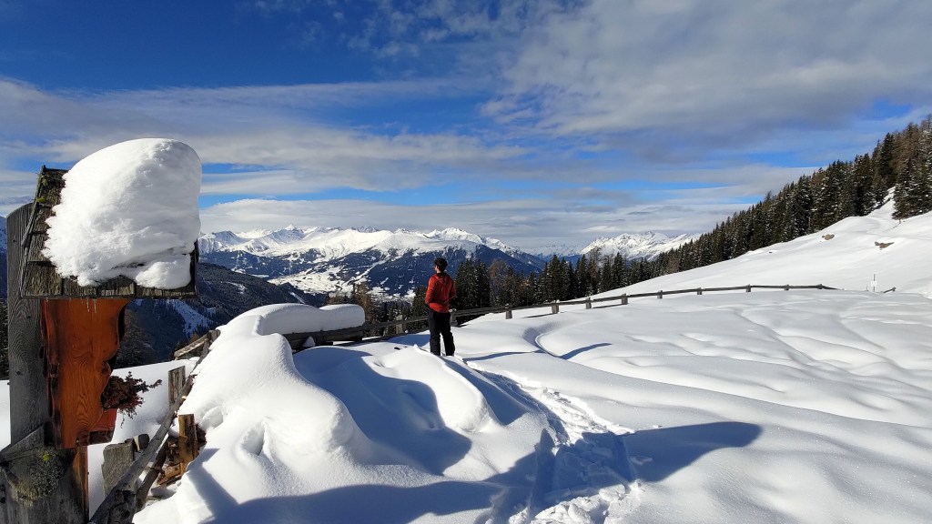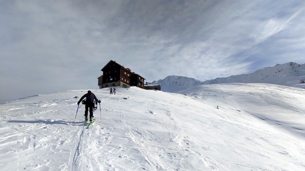 The suggestion by Josef’s trusted source behind enemy lines to move deeper into enemy territory seemed like a good idea. After all, it had surely snowed more further east. Plus, avalanche risk would ease gradually and the forecast promised cold and sunny weather with no wind. The Fliess cantonment was left early on Wednesday morning and the team relocated east, past Innsbruck to Wattener Lizum, a high alpine training ground for the armed forces of Austria and friendly nations. After some more logistical and mechanical challenges in the morning, all of which were mastered, Josef’s double agent was late to the rendez vous but did not change sides so that, by noon, camp was set up at Lizumer Hütte.