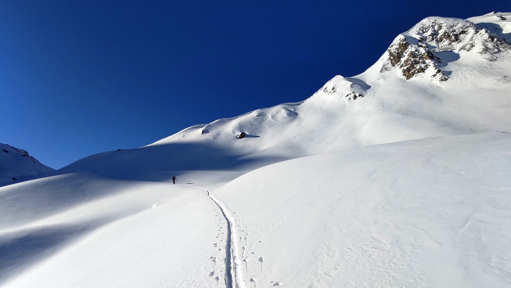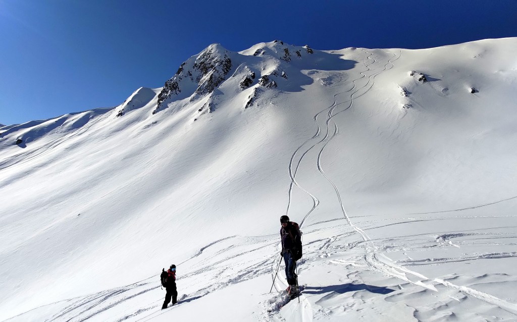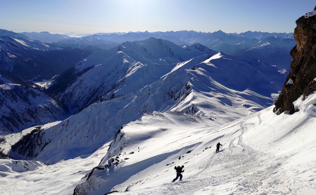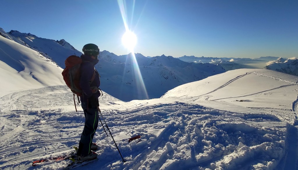 Although vastly outnumbered by enemy soldiers and ubiquitous debris of avalanches that had released spontaneously, two overwhelming victories were won on Thursday and Friday. Continued bluebird weather and sub-zero temperatures provided perfect conditions for countless yo-yo rotations on the north and north-west aspects below Mölser Sonnenspitze and Tarntaler Köpfe, followed on Thursday afternoon by an ambitious loop around Lizumer Reckner and over the peak of Geier at 2860m, to ski a final north facing descent back to the hut. To everyone’s surprise, everyone else present in the area preferred the beaten tracks and skiing the wind affected aspects and ridges, steering clear of the best snow and all of the squad’s skin tracks.
